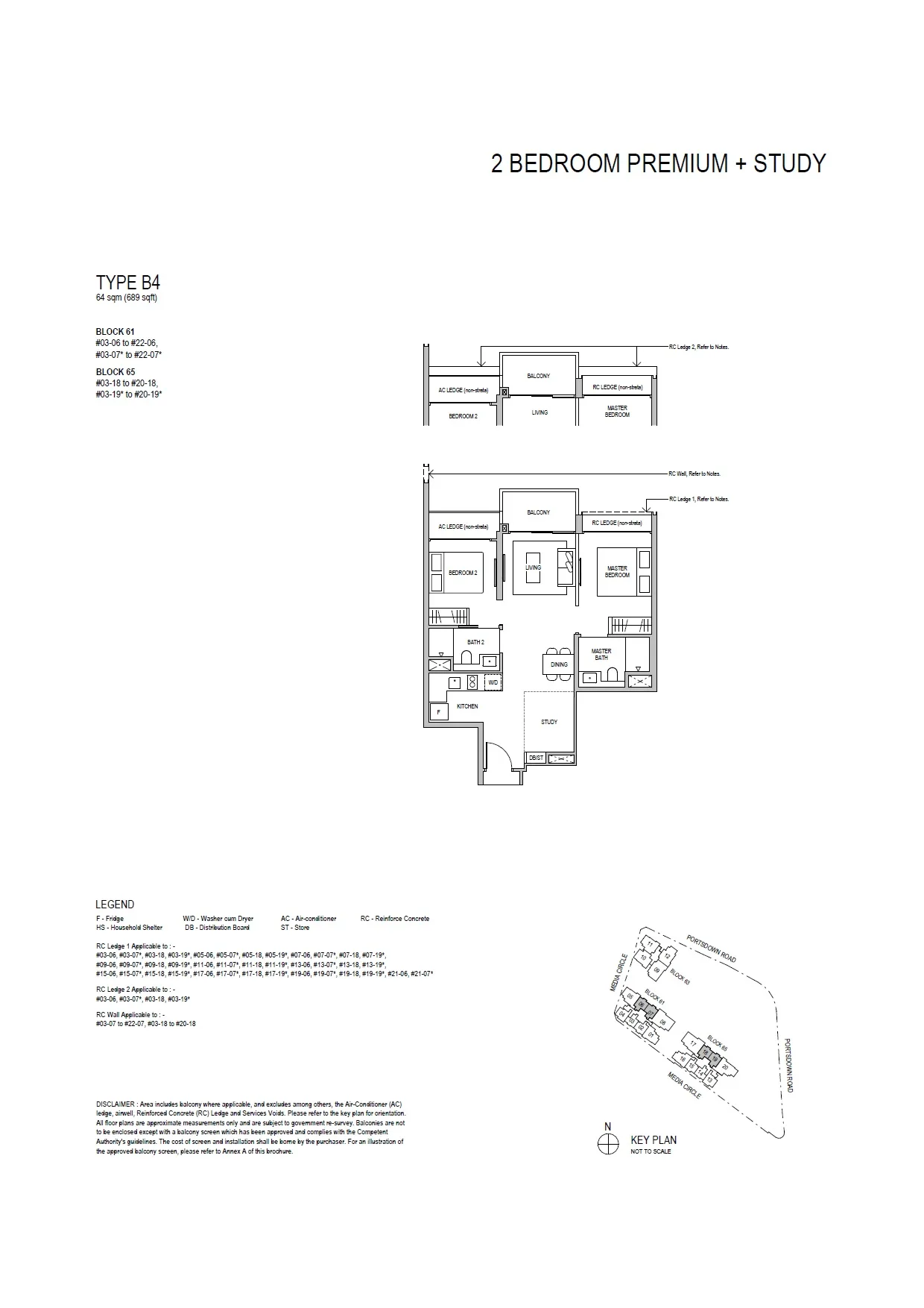 • 2 Bedroom + Study, 689 sq ft