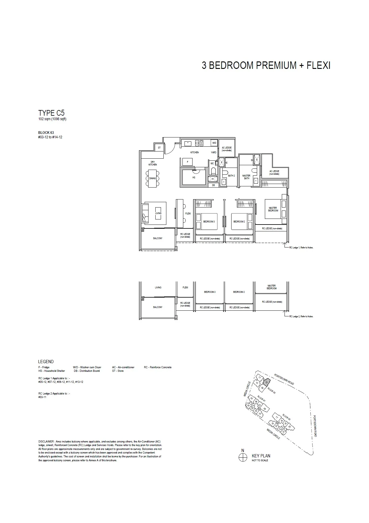 • 3 Bedroom Premium + Flexi, 1098 sq ft