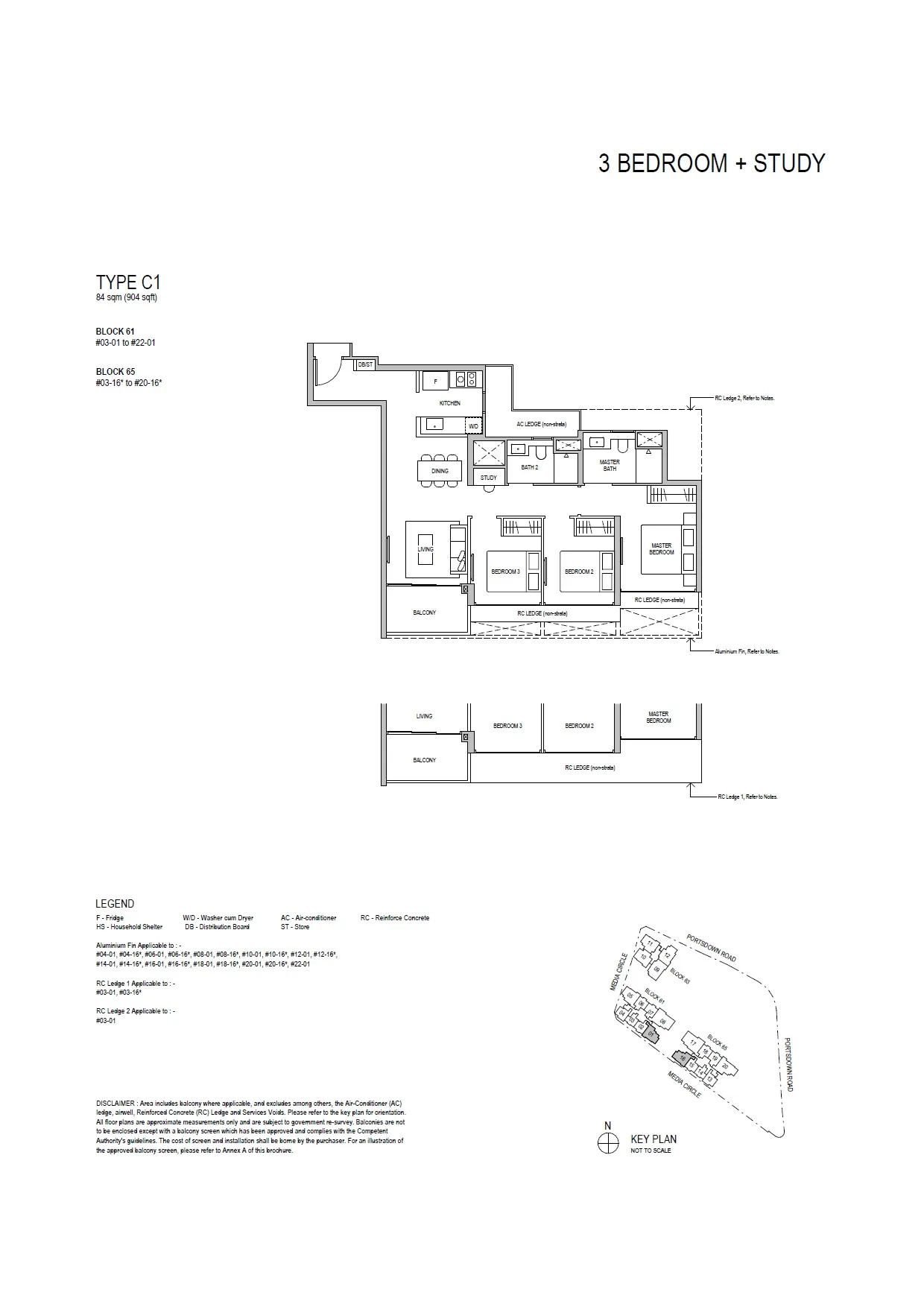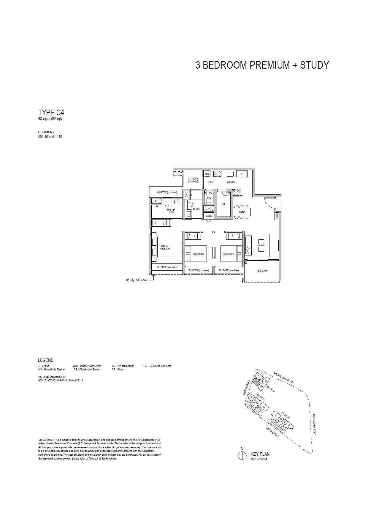• 3 Bedroom Premium + Study, 990 sq ft