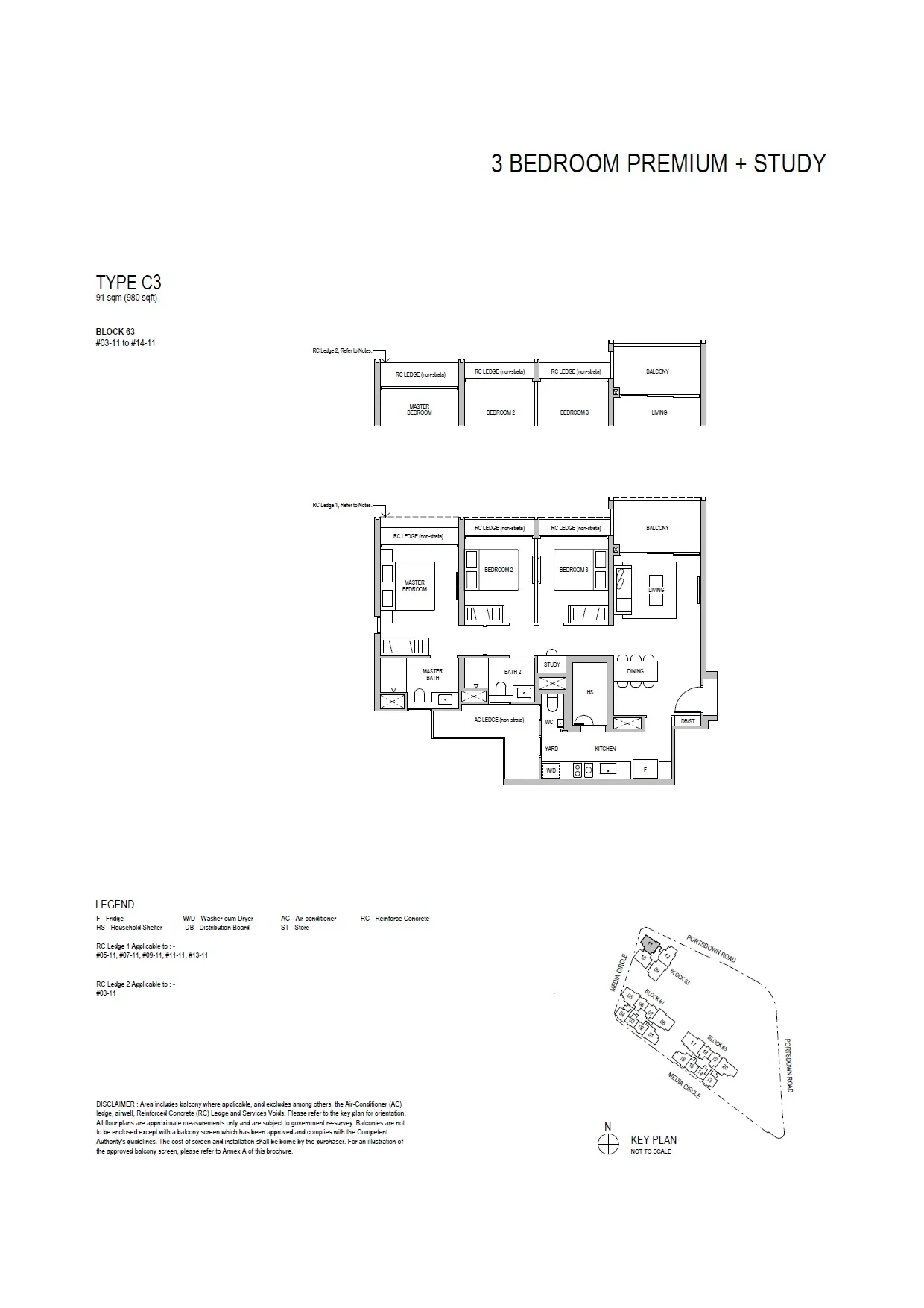 • 3 Bedroom Premium + Study, 980 sq ft